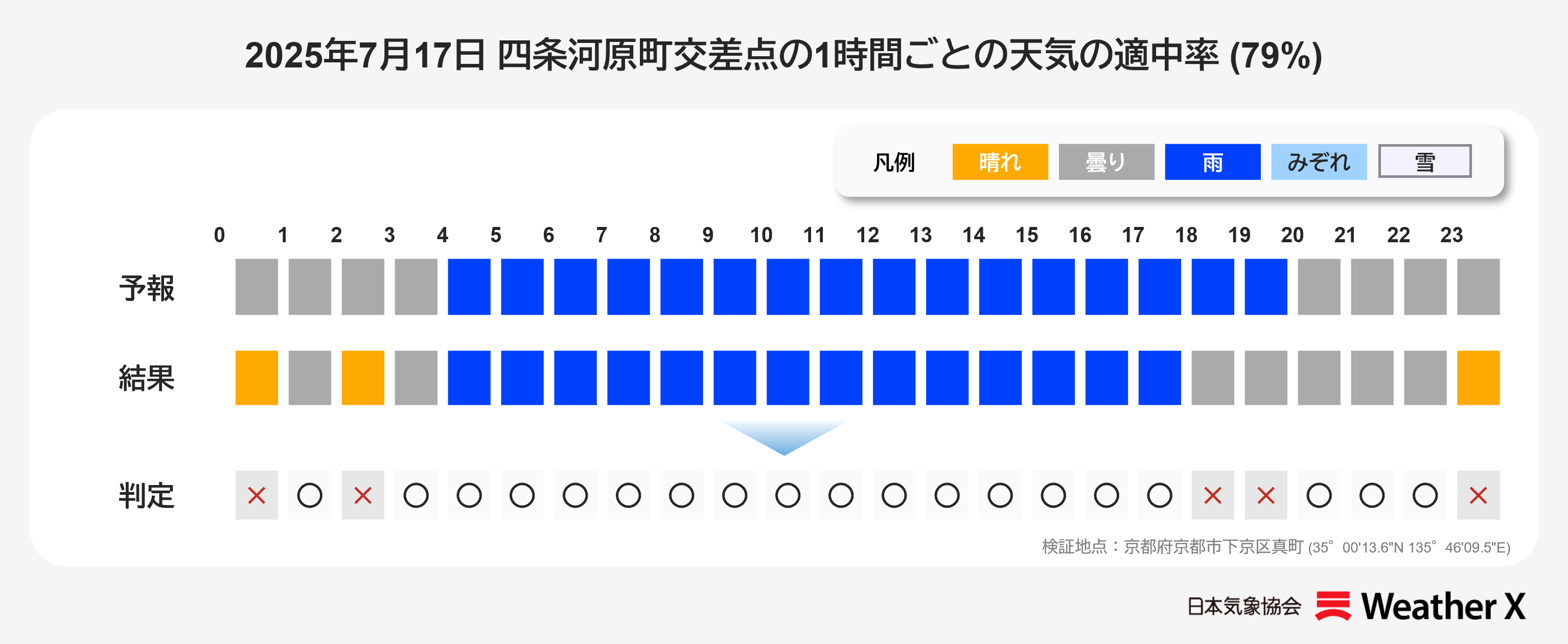 予報適中率71% 雨の止むタイミングを部分的に外すも傾向予測成功