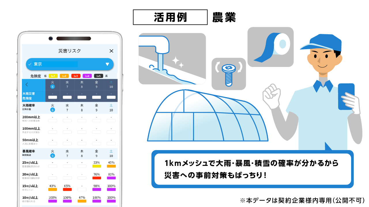 日本気象協会と法人契約をしていただき、アプリをご利用いただけます。