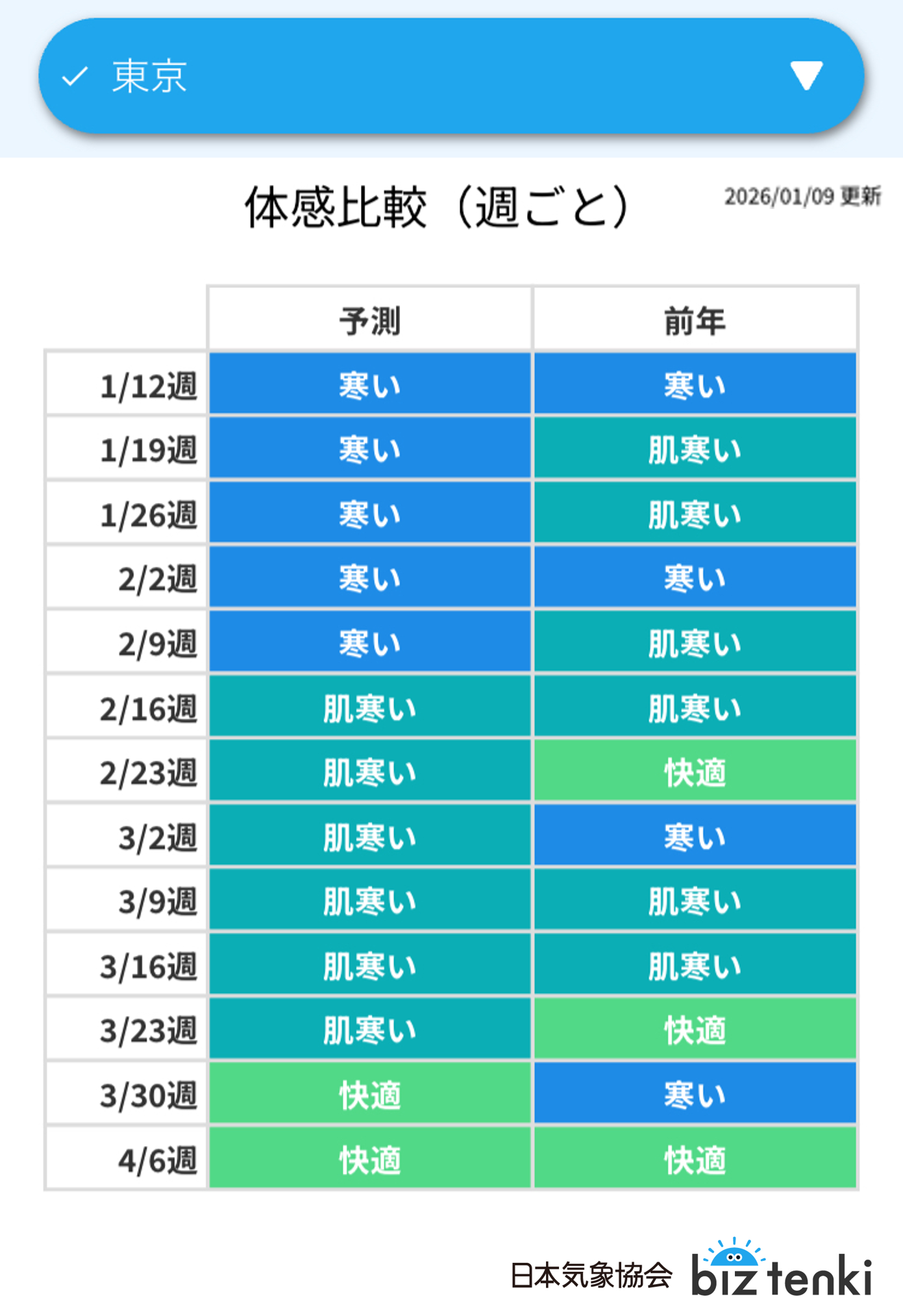 寒さや雪の影響を受けやすい商品や、気温低下に反応しやすい消費動向については、2026年1月の天候から見る売上が伸びる商品予測【日本気象協会 お天気マーケット予報】の記事で詳しく解説します。