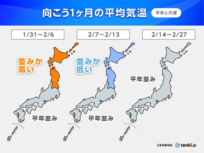 2026年2月は、1月下旬から続く強い寒気の影響を受けつつも、1か月の平均気温は全国的にほぼ平年並みとなる見通しです。