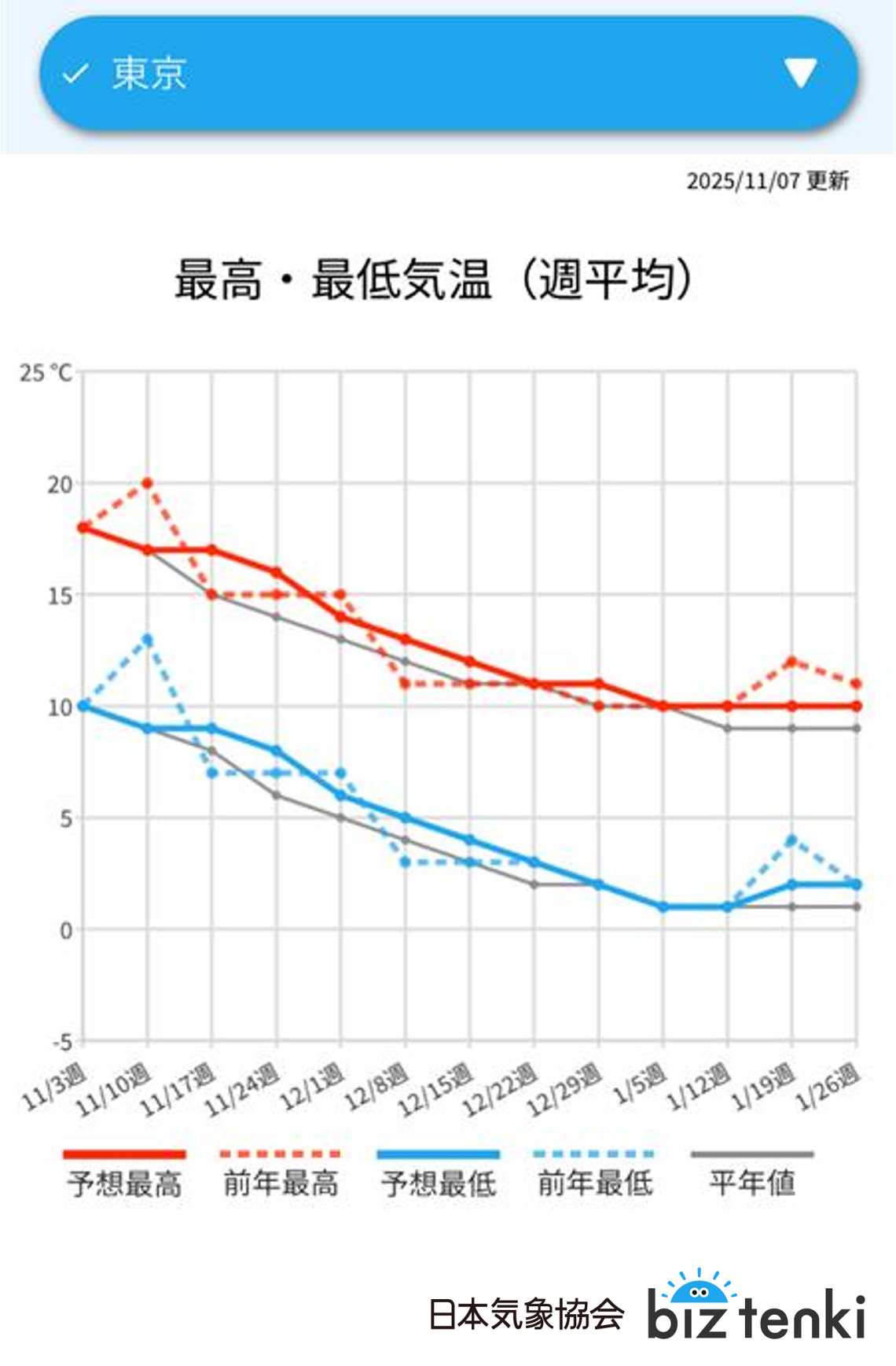 2025年11月の天気と気温